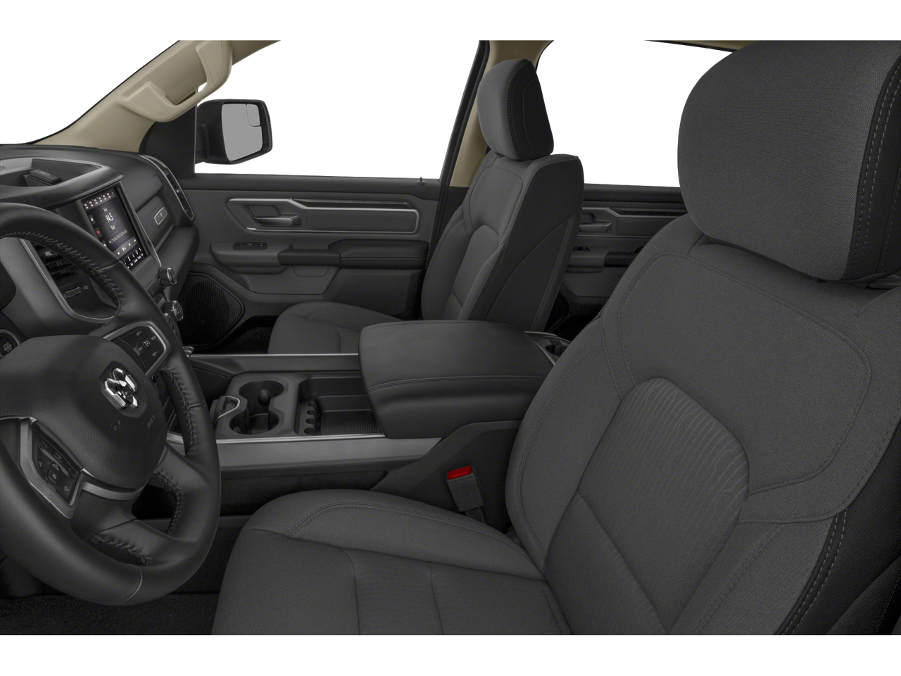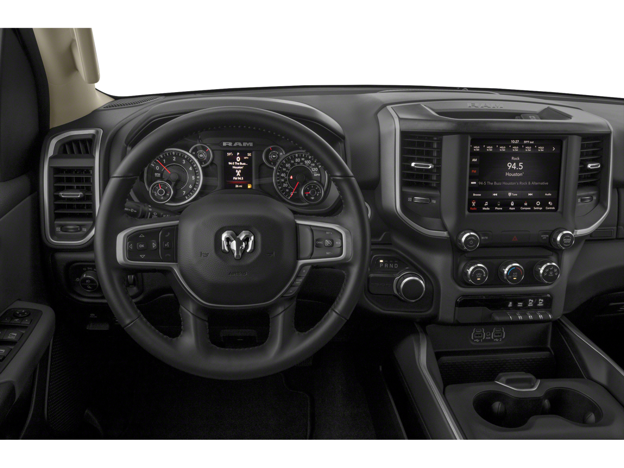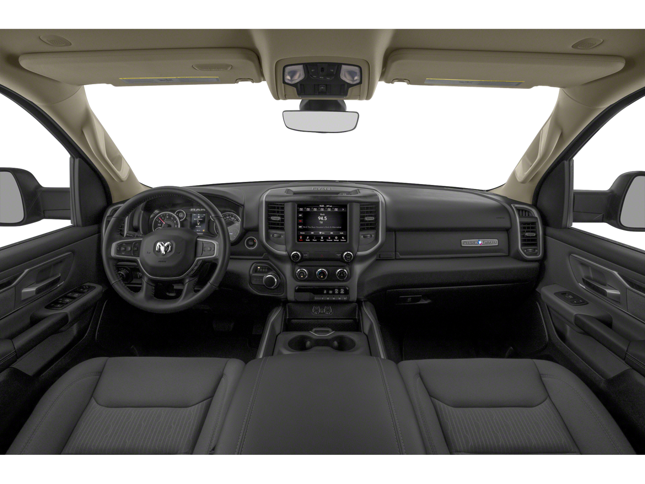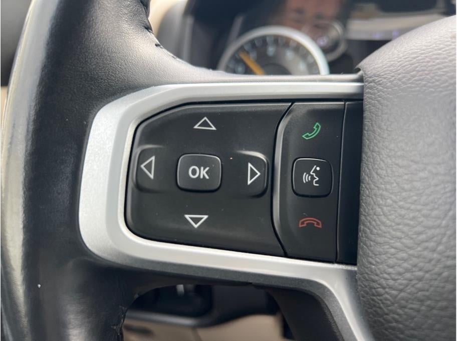 3 Rear Seat Head Restraints, 3.21 Rear Axle Ratio, 4 Way Front Headrests, 4-Wheel Disc Brakes, 48V Belt Starter Generator, 6 Speakers, ABS brakes, Air Conditioning, Alloy wheels, AM/FM radio, Anti-Spin Differential Rear Axle, Big Horn Badge, Brake assist, Bumpers: chrome, Cloth Bench Seat, Compass, Delay-off headlights, Driver door bin, Dual front impact airbags, Dual front side impact airbags, Electronic Stability Control, Front & Rear Rubber Floor Mats, Front anti-roll bar, Front Center Armrest w/Storage, Front fog lights, Front reading lights, Front Seat Back Map Pockets, Front wheel independent suspension, Fully automatic headlights, GPS Antenna Input, Heated door mirrors, Illuminated entry, Leather steering wheel, Low tire pressure warning, Manual Adjust 4-Way Front Passenger Seat, Occupant sensing airbag, Outside temperature display, Overhead airbag, Overhead console, Panic alarm, ParkView Rear Back-Up Camera, Passenger door bin, Passenger vanity mirror, Power door mirrors, Power steering, Power windows, Quick Order Package 23Z Big Horn, Radio data system, Radio: Uconnect 3 w/5 Display, Rear 60/40 Folding Seat, Rear anti-roll bar, Rear seat center armrest, Rear step bumper, Remote keyless entry, Speed control, Split folding rear seat, Steering wheel mounted audio controls, Tachometer, Telescoping steering wheel, Tilt steering wheel, Traction control, Trip computer, Variably intermittent wipers, Voltmeter, Wheels: 18 x 8 Cast-Aluminum Painted.