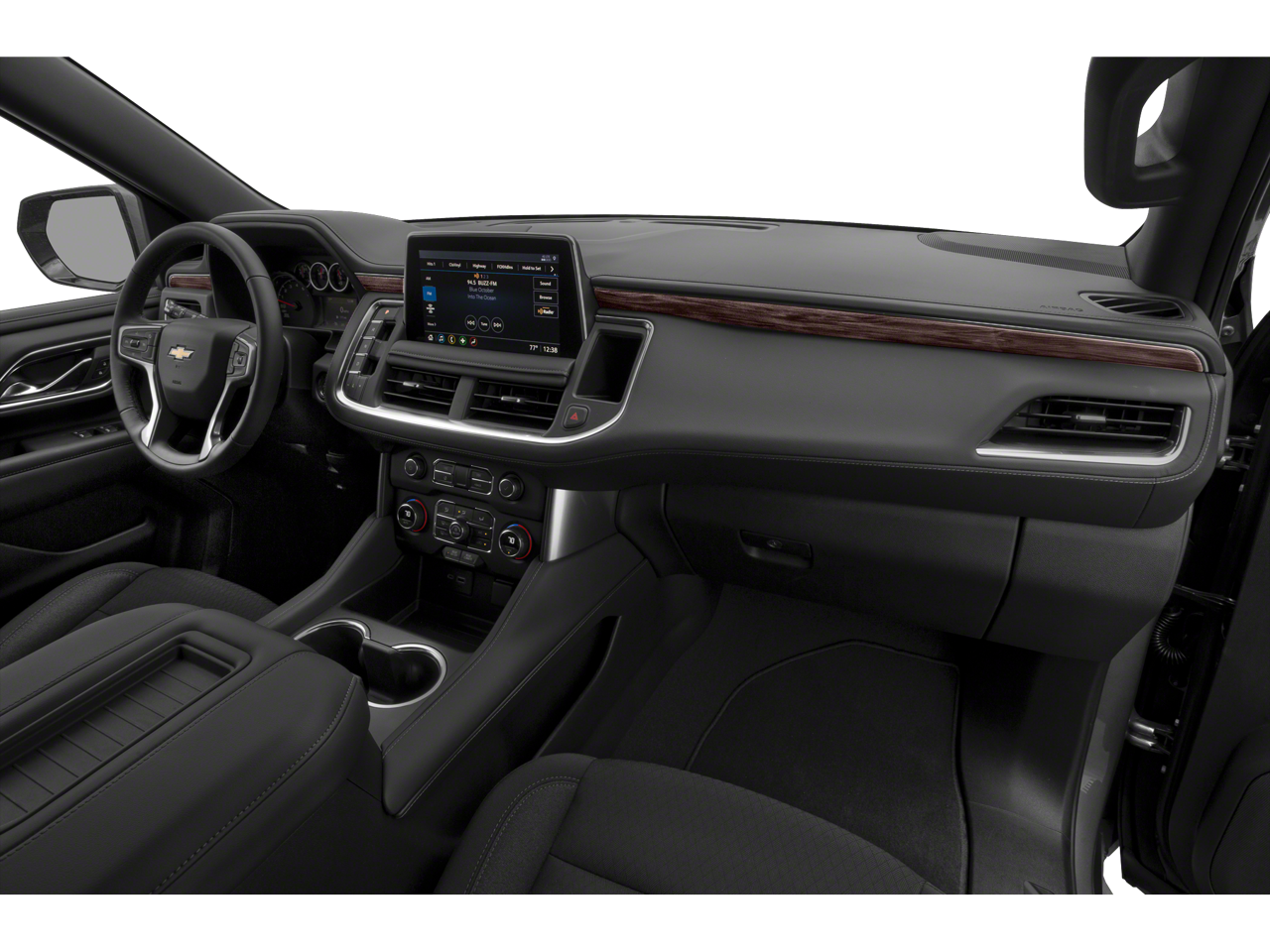 1st & 2nd Row Color-Keyed Carpeted Floor Mats, 2 USB Data Ports, 3.23 Rear Axle Ratio, 3rd row seats: split-bench, 4-Wheel Disc Brakes, 6 Speakers, ABS brakes, Air Conditioning, Alloy wheels, AM/FM radio: SiriusXM with 360L, Apple CarPlay/Android Auto, Auto High-beam Headlights, Automatic temperature control, Brake assist, Bumpers: body-color, Color-Keyed Carpeting Floor Covering, Compass, Delay-off headlights, Driver & Front Outboard Passenger Airbags, Driver door bin, Driver vanity mirror, Dual front impact airbags, Dual front side impact airbags, Electronic Stability Control, Emergency communication system: OnStar and Chevrolet connected services capable, Floor Console w/Storage Area, Four wheel independent suspension, Front anti-roll bar, Front Bucket Seats, Front Center Armrest, Front dual zone A/C, Front reading lights, Fully automatic headlights, HD Radio, Heated door mirrors, Illuminated entry, Infotainment Display, Leather steering wheel, Leather-Wrapped Steering Wheel, LED Daytime Running Lamps, Low tire pressure warning, Not Equipped w/Automatic Stop/Start, Not Equipped w/Steering Column Lock, Occupant sensing airbag, Outside temperature display, Overhead airbag, Overhead console, Panic alarm, Passenger door bin, Passenger vanity mirror, Power door mirrors, Power driver seat, Power passenger seat, Power steering, Power windows, Preferred Equipment Group 1LS, Premium audio system: Chevrolet Infotainment 3 Plus, Premium Cloth Seat Trim, Premium Smooth Ride Suspension, Radio: Chevrolet Infotainment 3 Plus System, Rain sensing wipers, Rear air conditioning, Rear anti-roll bar, Rear reading lights, Rear seat center armrest, Rear window defroster, Rear window wiper, Remote keyless entry, Remote Start, Roof rack: rails only, Security system, SiriusXM Radio w/360L, Speed control, Speed-sensing steering, Split folding rear seat, Spoiler, Steering wheel mounted a