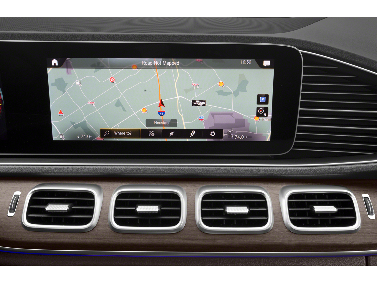 The cabin fits five to seven passengers depending on configuration, showcasing power leather seating, a panoramic-style sunroof, heated seats, wireless phone charging, remote start, keyless entry and push-button start. The MBUX tech interface integrates Android Auto, Apple CarPlay, Bluetooth® and navigation, supported by parking assistance, a rearview camera, blind spot monitoring, emergency braking assist and multiple drive safety aids for added confidence. Premium touches include alloy wheels, power tailgate, LED lighting, a turbocharged performance setup and quiet highway ride that defines the GLE luxury experience.