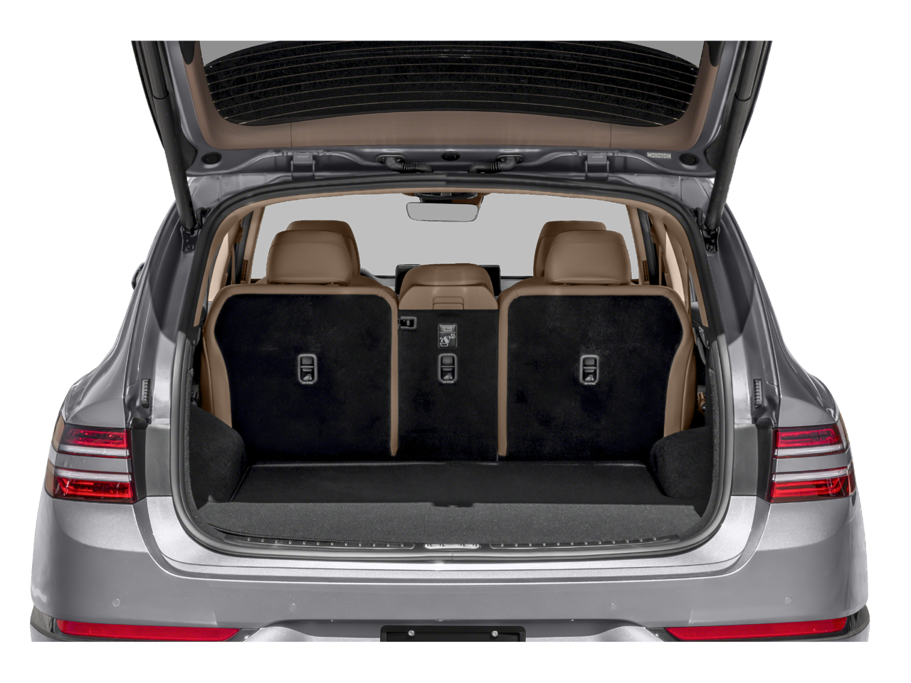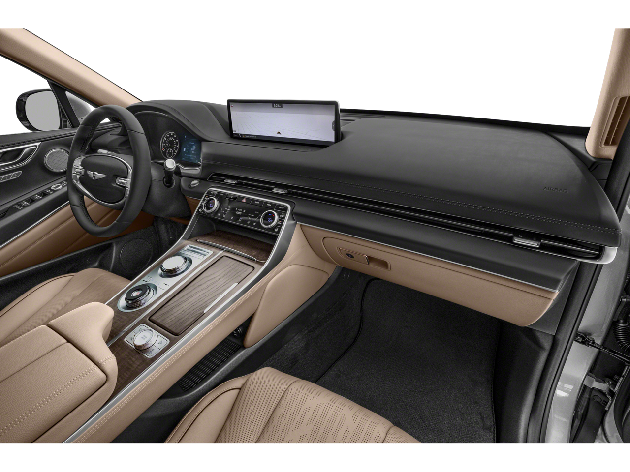 Inside, the GV80 emphasizes premium comfort and advanced technology. Heated and cooled leather seats, power tailgate, wireless charging, remote start, panoramic sunroof and Wi-Fi hotspot capability contribute to a luxury-focused driving experience. Its safety and driver-assistance suite includes lane departure warning, lane keep assist, blind spot monitoring, forward collision warning, automatic emergency braking and automatic high beams. The SUV also offers Apple CarPlay, Android Auto, navigation, satellite radio, rearview camera, alloy wheels and keyless entry with push-button ignition.