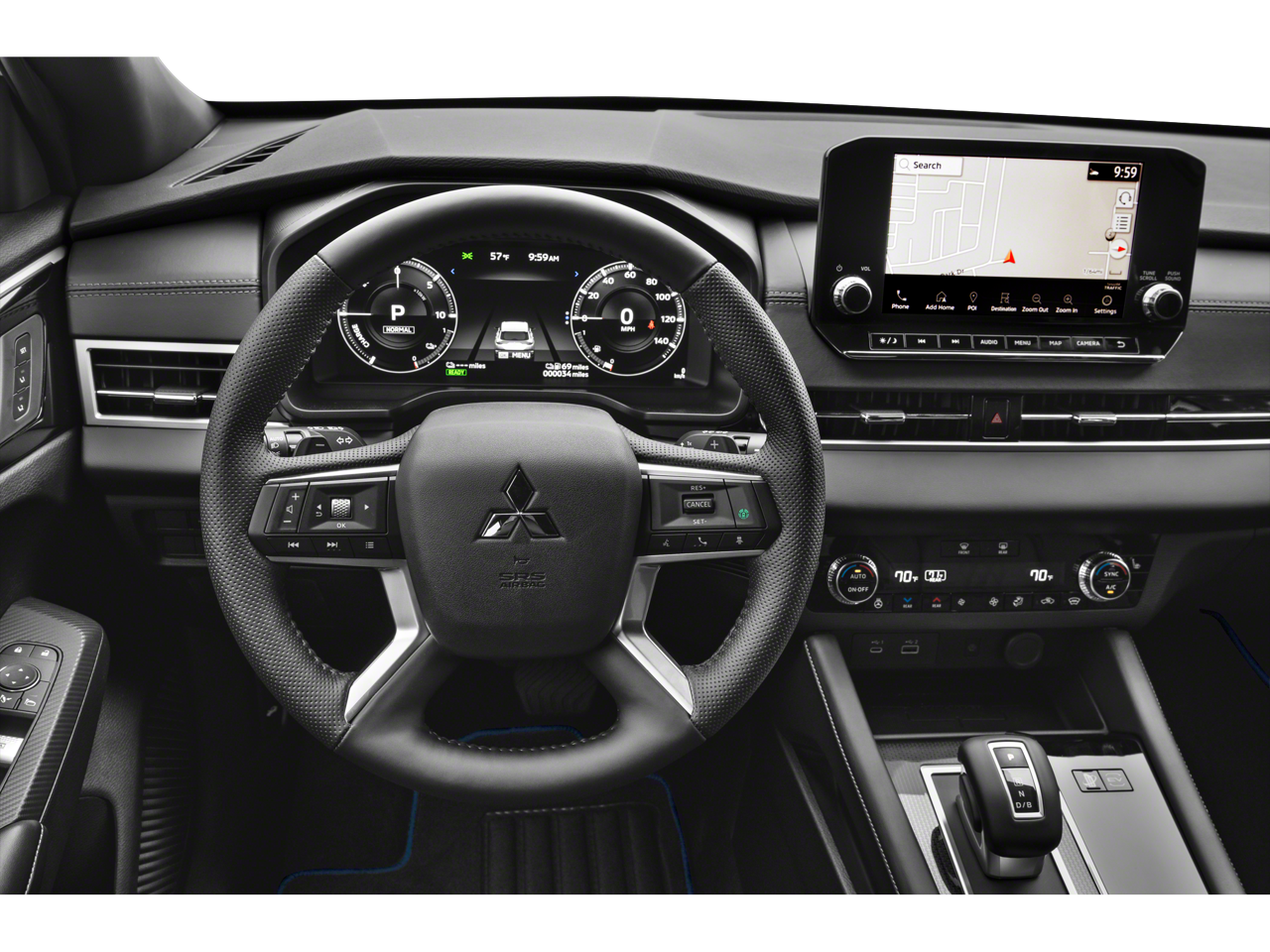 2.4L 4-Cylinder DI DOHC, 3rd row seats: split-bench, 4-Wheel Disc Brakes, ABS brakes, Air Conditioning, Alloy wheels, AM/FM radio: SiriusXM, Android Auto & Apple CarPlay, Auto High-beam Headlights, Auto-dimming Rear-View mirror, Automatic temperature control, Brake assist, Bumpers: body-color, Driver door bin, Driver vanity mirror, Dual front impact airbags, Dual front side impact airbags, Electronic Stability Control, Emergency communication system: Mitsubishi Connect w/ 24-month trial, Four wheel independent suspension, Front anti-roll bar, Front Bucket Seats, Front Center Armrest w/Storage, Front dual zone A/C, Front fog lights, Front reading lights, Fully automatic headlights, Headlight cleaning, Heated door mirrors, Heated Front Bucket Seats, Heated front seats, Heated rear seats, Heated steering wheel, Illuminated entry, Knee airbag, Leather Shift Knob, Leather steering wheel, Low tire pressure warning, Memory seat, Navigation System, Occupant sensing airbag, Outside temperature display, Overhead airbag, Overhead console, Panic alarm, Passenger door bin, Passenger vanity mirror, Power door mirrors, Power driver seat, Power Liftgate, Power moonroof, Power passenger seat, Power steering, Power windows, Radio data system, Radio: AM/FM 9 Smartphone Link Display Audio, Rain sensing wipers, Rear air conditioning, Rear anti-roll bar, Rear seat center armrest, Rear side impact airbag, Rear window defroster, Rear window wiper, Reclining 3rd row seat, Remote keyless entry, Security system, Speed control, Speed-Sensitive Wipers, Split folding rear seat, Spoiler, Steering wheel mounted audio controls, Tachometer, Telescoping steering wheel, Tilt steering wheel, Traction control, Trip computer, Turn signal indicator mirrors, Variably intermittent wipers, 2.4L 4-Cylinder DI DOHC.